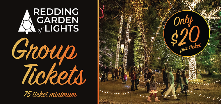 Perfect for holiday gifts for your staff or clientele, Group tickets allow you to purchase hard-copy tickets at a reduced price of just $20/each (including processing fee) with a minumum purchase of 75 tickets or more. Once purchased, Development Coordinator Nikki Espinosa will contact about picking up your hard-copy tickets at the Turtle Bay Administrative Building (1335 Arboretum Drive, Suite A Redding). No reservation or scheduling needed; just show up to the gate on any available night with tickets in hand and enjoy the show!